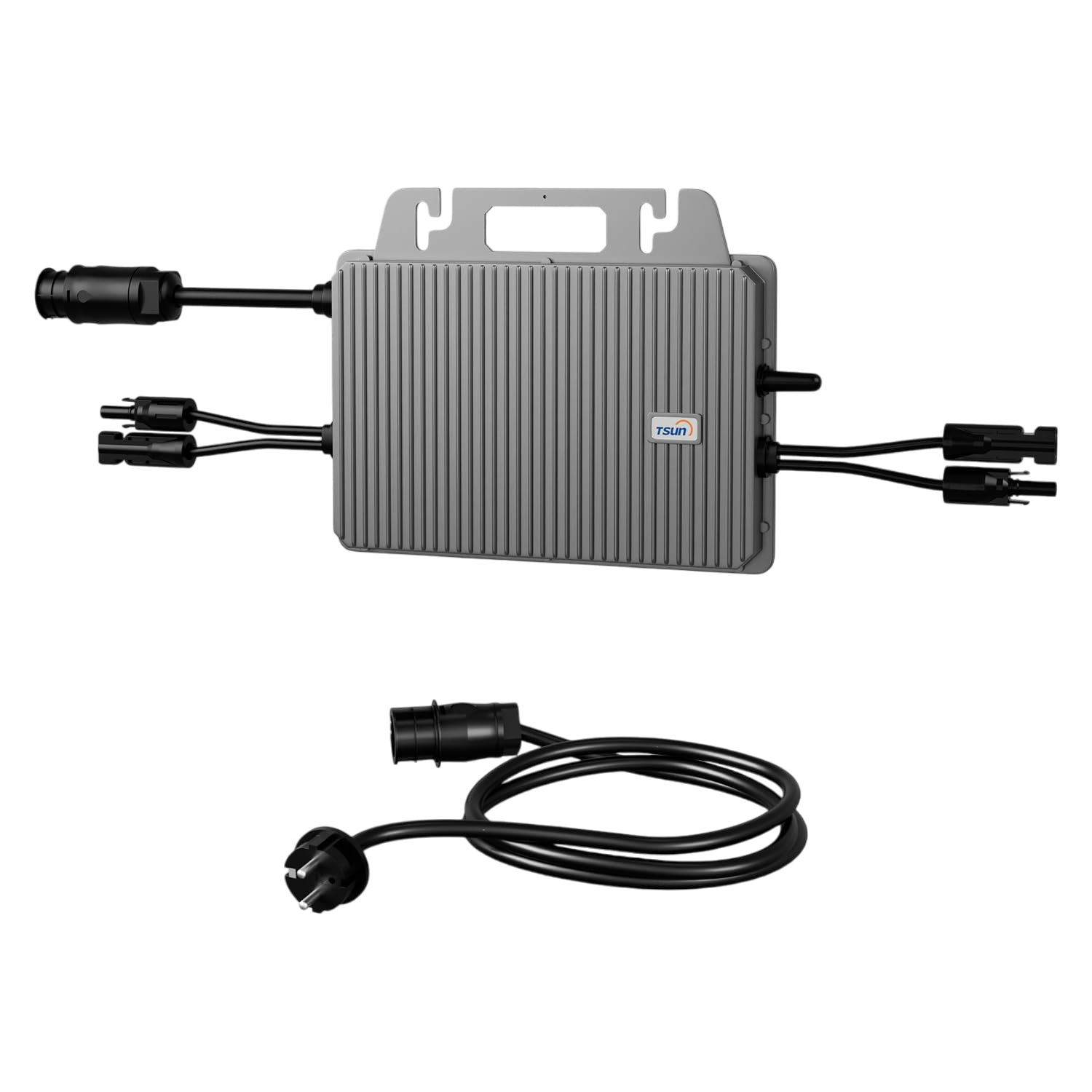 The TSUN TSOL-M800, designed for the direct connection of two PV modules, converts the generated solar power into grid-compatible form and feeds it directly into the home's electrical system. With an input voltage of up to 60V DC, there is no risk of electric shock or fire on the roof. Smaller than an A4 sheet of paper, it can be easily installed by one person.